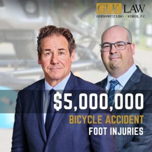 Gersowitz Libo & Korek, P.C. secured a $5,000,000 settlement against the City of New York and a private trucking company for a 27-year old bicyclist who was struck and run over in New York City. Tragically, the bicyclist underwent several surgeries to repair her foot before having it amputated. The defendants attempted to claim they were not responsible because the bicyclist was not in a designated bicycle lane at the time she was runover. However, discovery obtained by Gersowitz Libo & Korek, P.C. showed that the City of New York improperly designed the bicycle lane and did not provide sufficient warning signs for bicyclists and motorists. The case was handled by partner Jeff S. Korek and senior associate Daniel B. Linson.